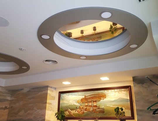 Технологию установки зеркального потолка нам не хотелось бы сообщать, т.к. это наша личная разработка. Мы встречали работы в другой технологии когда то и сами пользовались другими наработками, но всё это не даёт такого эффекта, и не является абсолютно безупречной, как та, которую мы представляем Вашему вниманию. Поэтому только готовый вариант. Наслаждайтесь, а если потребуется, звоните, пишите, мы это сделаем. В отличии от стекла нет веса и абсолютно не травматично.