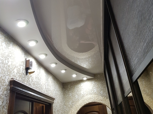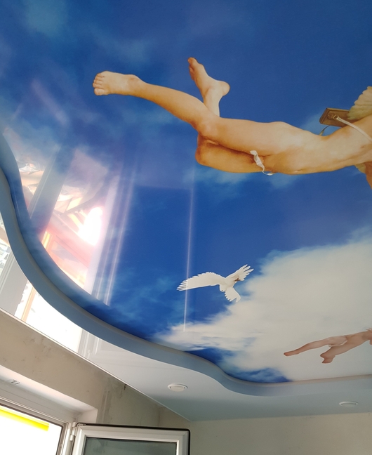 Сам процесс натяжки полотна ничем не отличается от такового при устройстве одноуровневых потолков.