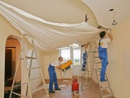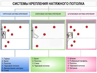 - В обоих случаях уровень потолка можно опустить на любую величину. После завершения монтажа визуально, крепление на стену или через потолок, выглядят одинаково.