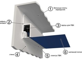 - к потолку, в этом случае используется потолочный профиль высотой 1,2 см. Если базовый потолок неровный, необходимо предварительно закрепить брус толщиной не менее 3 см. В этом случае потолок опустится минимум на 4,2 см.